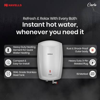 HAVELLS Carlo 5 L Instant Water Geyser (White)