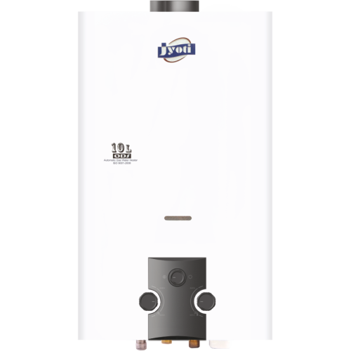 Jyoti 10 Litres HP Instant Gas Geyser is a fully automatic gas water heater that provides instant running hot water with a 10 Ltr heavy copper heat exchanger/tank. Made in India with safety features such as Oxygen Depletion Sensor, Flame Failure Device, Overheating Protection, and Child Lock to ensure maximum safety.