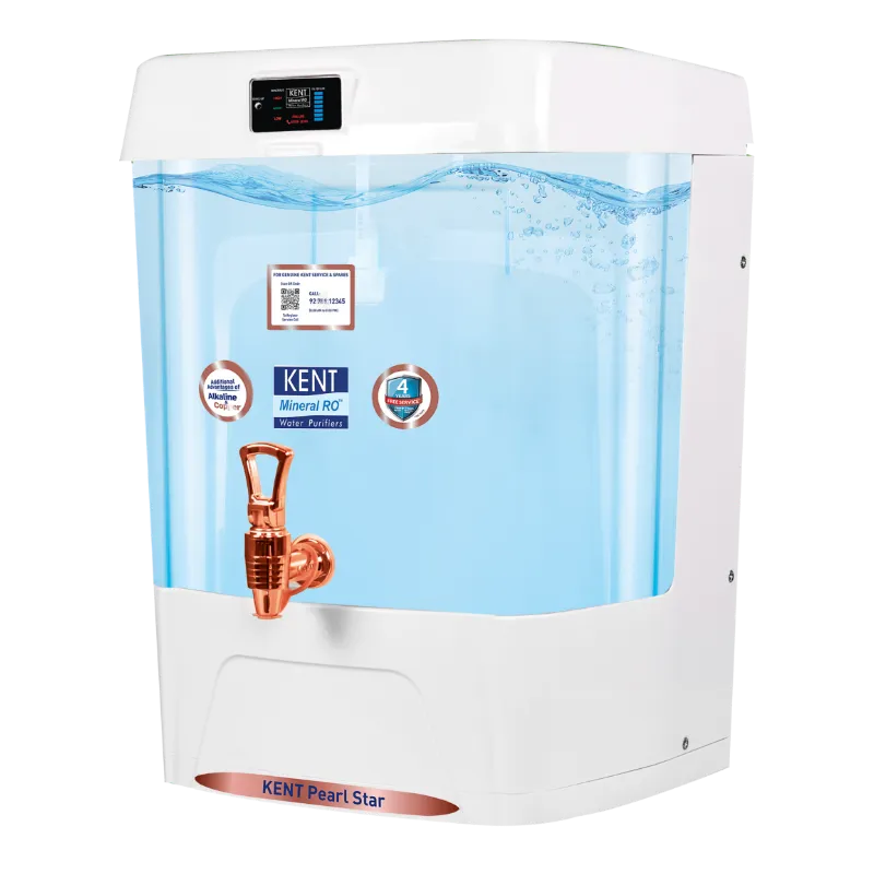 KENT Pearl Star is a top of the line RO water purifier that comes with a Digital Display of Purity feature that allows real time monitoring of purified water quality, filter’s life, RO flow rate etc. It utilises multiple purification process of RO+UV+UF+TDS Control +Alkaline+Copper to make water pure. It enhances water with an alkaline pH of 8.0+ while delivering the natural benefits of Copper. Also, it has transparent detachable storage tank for hassle free cleaning & hygienic consumption. Further, it comes with Zero Water Wastage Technology that recirculates rejected water back from your purifier to the overhead tank, leading to no wastage. This purifier is ideal for purifying brackish, tap and municipal corporation water.